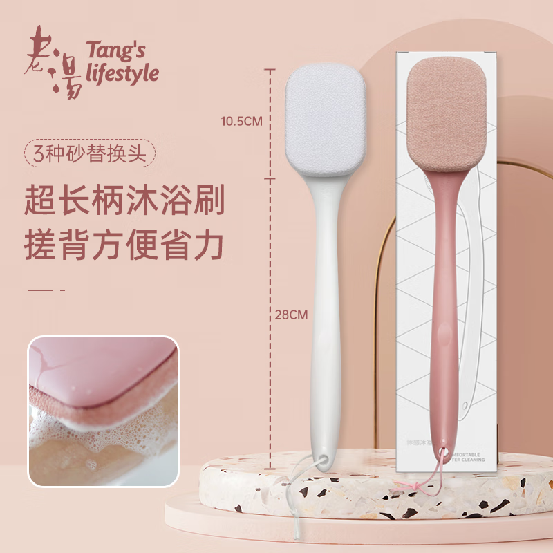 加仕高洗澡搓澡刷搓背神器不求人长柄软毛刷子双面两用擦背沐浴刷粉色