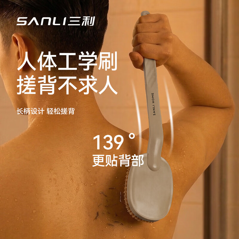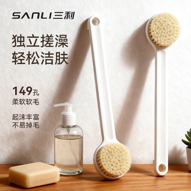 三利洗澡刷搓澡刷子软毛沐浴刷长柄身体刷擦背不求人后背搓泥洗澡神器